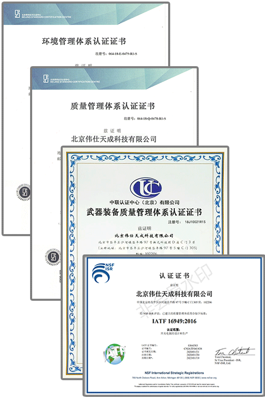 公司通過ISO9001質量體系認證、GJB9001C質量管理體系認證及IATF16949汽車行業質量體系認證,ISO14001環境體系認證,產品實現可定制化,高集成度,高性價比。